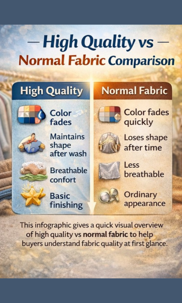 The ability to identify high quality fabric is an important skill for any person who uses clothing, accessories, or household linens. Quality of the fabric used can impact comfort, long-term durability, aesthetics, and overall performance. This guide answers your questions about fabric quality in an easy-to-understand manner without technical words and jargon. In this guide, you will learn how to identify fabrics using your sense of touch, sight, and basic knowledge that everyone can use What is high quality fabric? How to identify high quality fabrics by checking fiber strength, smooth texture, and overall fabric balance before buying. Several things make high-quality fabrics, among them a good source material, strong fibers, and a well-made product. They are comfortable, hold their shape, and function well, never wearing out easily.Quality fabrics are not just those that are expensive or have good brands on the label; they are actually based on the type of fiber used to create the fabric, the way it is woven or knitted, how it is finished, and how it behaves when it is being used How to identify high quality fabrics by touch and feel? High quality fabrics feel smooth, balanced, and comfortable when touched. They return to shape easily after folding and do not feel rough or overly stiff. This usually indicates strong fibers, good construction, and long-lasting quality. How to identify high quality fabrics using touch and feel, including softness, flexibility, and natural fabric drape. How can fabric weave and construction show quality? Fabric weave and construction play a major role in overall quality. Tightly woven fabrics with even patterns are usually stronger and last longer than loosely woven ones. Hold the fabric up to light and check for uniformity. High quality fabrics show consistent spacing and clean edges. Loose threads, uneven gaps, or distorted patterns often suggest poor construction. How do fibers affect fabric quality and durability? Natural fibers like cotton, wool, silk, and linen are often associated with high quality fabrics because they breathe well and age gracefully. Synthetic fibers can also be high quality when engineered properly, but cheap blends often reduce durability. Check the fabric label to understand fiber content. Long-staple fibers, such as high-grade cotton or fine wool, resist pilling and tearing better. This topic is explored further in Luxury vs Normal Fabrics, which compares fiber performance in real use. How can you tell if a fabric will last over time? High quality fabrics maintain their look and structure after repeated use and washing. They resist pilling, fading, and stretching better than low-quality materials. Gently rub the fabric surface to see if fibers loosen quickly. Pull slightly along seams or edges; good fabric recovers without distortion. Learning how fabrics age is also discussed in Perennials Fabrics Overview, which covers long-lasting textile types. How to identify high quality fabrics by testing durability, shape retention, and long-term fabric performance. Is price a reliable way to identify high quality fabrics? Price alone is not a reliable indicator of fabric quality. Some expensive items use average fabrics, while some reasonably priced items use excellent materials and construction. How to identify high quality fabrics using a simple checklist that focuses on fabric quality, not price or brand name. Instead of focusing on cost, evaluate fiber content, weave, finish, and feel together. Educated fabric choices often deliver better value than relying on price tags or brand labels. For beginners, Luxurious Fabric Fashion Guide for Beginners explains this balance clearly. Why fabric finishing and dye quality matter? Fabric finishing affects softness, color retention, and overall appearance. High quality fabrics use stable dyes and gentle finishing processes that do not weaken fibers. Look for even coloring and minimal chemical smell, as poor-quality dyes fade quickly and bleed during washing. Trusted fashion publications such as Vogue’s fabric care insights and guide often explain how finishing techniques impact fabric performance and garment lifespan. For deeper industry perspectives, Business of Fashion’s textile analysis provides valuable background on modern fabric production standards. Frequently Asked Questions How to identify high-quality fabrics while shopping online? Fiber content, close-up images, weave styles, and care labels should be checked. Avoid ambiguous statements without any reference to the materials used. Which is better, natural fabrics or synthetic ones? Not always. High-quality synthetics may be superior to low-grade natural fibers in durability and structure. Is heavy fabric a sign of better quality? No. Weight will vary with purpose. Lightweight fabrics can be high quality with strong fibers and weave. How may a beginner avoid inferior-quality fabrics? Familiarize yourself with different types of fabric fibers, touch the fabric whenever feasible, and pay attention to thickness, texture, and finish. Do high-quality fabrics require special handling? Some do. These fabrics generally require gentle washing; however, if properly cared for, they can last far longer. Conclusion Learning how to identify high quality fabrics gives you a smarter and more logical approach to buying decisions. Instead of basing your choices on price or brand names alone, you can evaluate texture, composition, construction, and finishing.Understanding these fundamentals helps you avoid poor materials that wear out quickly. Over time, this knowledge saves money, improves comfort, and allows you to build a long-lasting wardrobe or textile collection with confidence. Post navigation Luxury vs Normal Fabrics: A Simple, Honest Comparison What Constitutes High-Quality Luxury Clothing?