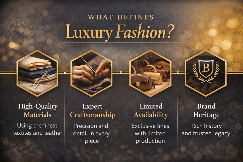 Luxury fashion guide is not just about expensive clothes. It is about quality, craftsmanship, history, and confidence. In the United States, luxury fashion has become a lifestyle choice for women who value timeless style over fast trends. This guide is written in simple, clear language so that even a beginner can understand what luxury fashion really means and how to approach it smartly. Whether you are new to luxury fashion or want to learn how luxury works behind the scenes, this guide will help you build strong fashion knowledge step by step. Luxury fashion combines premium materials, expert craftsmanship, and science-backed design to create timeless elegance. What Is Luxury Fashion Guide? Luxury fashion means clothing, accessories, and shoes that are made with high-quality materials, expert craftsmanship, and thoughtful design. Unlike fast fashion, luxury items are created to last for years, not months. Key Features of Luxury Fashion guide: High-quality materials: cashmere, silk, leather, rare fabrics Craftsmanship: Hand-stitched, detailed, and precise Limited availability: Exclusive, not mass-produced Brand reputation: Trusted designers with a legacy Many people first understand luxury concepts through luxury lifestyle content, where fashion, travel, and elegance come together as one complete experience. Why Luxury Fashion Matters in the USA The United States is one of the largest luxury fashion markets in the world. American buyers value comfort, status, and long-term value. Luxury fashion trends in the USA is often linked with professional success, personal confidence, and refined taste. According to insights shared by the global luxury fashion market, consumers are moving away from trend-based shopping and investing more in timeless, versatile pieces. Luxury fashion also connects closely with fashion marketing trends 2025, where storytelling, craftsmanship, and brand authenticity matter more than aggressive selling. Key Elements That Define Luxury Fashion High-Quality Materials Luxury fashion uses fabrics that feel rich, age beautifully, and hold their shape. Cashmere coats, silk dresses, and fine leather bags are classic examples. Expert Craftsmanship Luxury pieces are often hand-stitched or carefully assembled by skilled artisans. This level of work separates luxury brands from mass-produced clothing. Limited Availability Luxury brands do not produce unlimited stock. This exclusivity increases desirability and protects brand value. Brand Reputation and Legacy Luxury buyers trust brands with history. Many iconic names are known globally and studied in best fashion advice websites 2025 for their influence on style and culture. Top Luxury Fashion Designers and Brands Luxury fashion would not exist without visionary designers. Many luxury fashion designers focus on timeless silhouettes instead of seasonal hype. Their work influences global trends and defines elegance. In the USA, luxury buyers often explore: European heritage brands American luxury designers with modern aesthetics British luxury fashion brands known for tailoring and structure Learning about designers helps beginners understand why luxury fashion holds long-term value. Luxury Clothing, Shoes, and Accessories Explained Luxury fashion is not limited to clothing. Accessories often play a bigger role in defining a luxury look. Luxury Women’s Clothing Luxury wardrobes often start with classic pieces from luxury women clothing brands, such as tailored blazers, elegant dresses, and structured coats. Luxury Shoes High-quality footwear offers comfort, durability, and design balance. Many women begin their luxury journey with timeless luxury shoes that work for multiple occasions. Luxury Jewelry Jewelry adds identity to luxury fashion. Many beginners prefer luxury jewelry for women or affordable luxury jewelry to start small while learning quality standards. Entry-Level Luxury Watches Watches are also a strong entry point. Guides like best entry-level luxury watches help beginners understand value without overspending. Sustainable and Resale Luxury Fashion Modern luxury fashion is evolving. Sustainability and resale are becoming important, especially in the USA.Which is we explain in this luxury fashion guide . Many buyers now explore sustainable luxury handbags to align fashion with environmental responsibility. At the same time, the luxury fashion resale market allows access to premium items at more approachable prices. These shifts show how luxury fashion adapts while maintaining exclusivity. Case Study: How Luxury Brands Maintain Value Brands like Chanel and Hermès rarely discount their products. Their strategy focuses on limited production, consistent pricing, and strong storytelling. According to analysis shared by Business of Fashion luxury market insights, this approach protects brand value and customer trust over decades. This is why luxury fashion behaves differently from fast fashion brands. How Beginners Can Start with Luxury Fashion This luxury fashion guide is for you,If you are new to luxury fashion, start slowly: Learn fabric quality and fit Choose neutral colors and then designs Explore casual elegance clothing for everyday luxuryInvest in one quality item instead of many trendy pieces Luxury fashion is a journey, not a race. Frequently Asked Questions Is luxury fashion worth the money? Yes, because luxury items last longer, maintain value, and offer better craftsmanship. What is entry-level luxury fashion? Entry-level luxury includes accessories, watches, or smaller items that introduce quality without high cost. How is luxury fashion different from fast fashion? Luxury focuses on quality and longevity, while fast fashion focuses on speed and low prices. Can luxury fashion be affordable? Through resale markets and smart choices, luxury can be more accessible. Final Thoughts True luxury fashion goes beyond trends and logos—it is rooted in science, craftsmanship, and intentional design.Luxury fashion is 