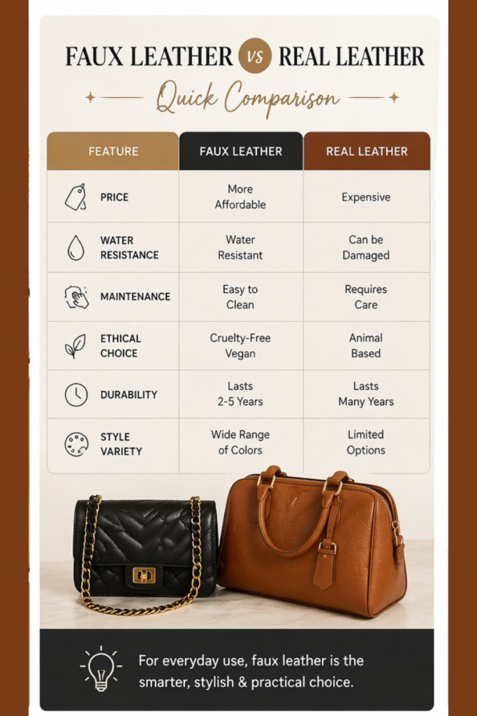 👉 Conclusion: For modern lifestyles, faux leather is a smarter and more practical choice.